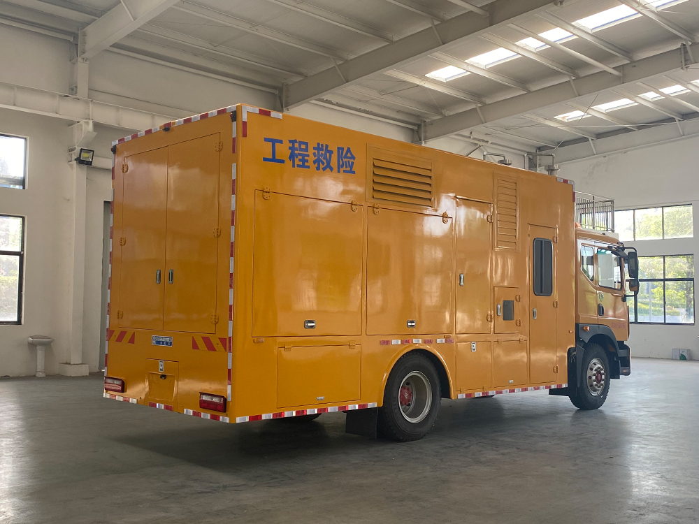 | 整车说明: | 车厢顶部封闭,不可开启。车辆主要专用装置:装有静音车厢、发电机组、电缆卷盘、救险设备等,内部可选装电驱式排水泵或柴油机驱动式水泵或液压水泵。专用功能及装置:发电机机组,远距离输电装置,电焊机以及应急抢险抢修时必备的光源,气源,电源设备,整车长/轴距/后悬对应关系为(mm):8680/4700/2720,8480/4500/2720,8180/4500/2420,7910/3950/2700,7610/3950/2400;防护材料为Q235碳钢,侧面防护由裙板结构构成,,离地高度430mm,后下防护采用螺栓连接,断面尺寸为Φ120mm,下缘离地高500mm;ABS系统生产厂家,型号 :焦作博瑞克控制技术有限公司,J ABS;襄阳东风隆诚机械有限责任公司,ABS/ASR-24V-4S/4M。安装液压尾板:后部尾板收起状态的水平长度是300mm,尾板质量为440kg。选装上装新外形,选装不带尾板。 | ||
