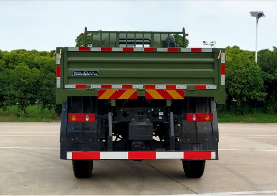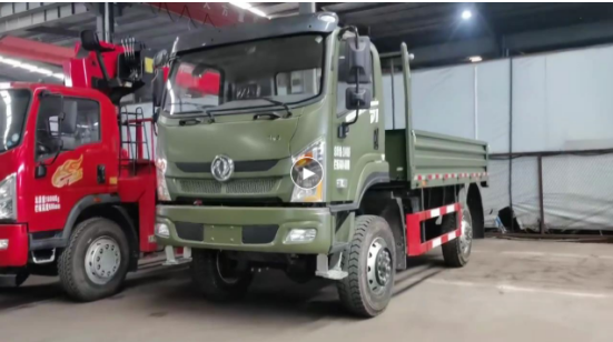 程力汽车集团制造的东风四驱载货车采用东风商用车原厂四驱越野底盘,D1新款单排驾驶室,玉柴180马力国六排放发动机,韶齿5档变速箱,杭州前进3.5吨级分动箱,分时四驱,气动控制,前桥4.5T,后桥8T,轮胎为越野大花纹单胎,型号为295/80R22.5 18PR,250mm双层大梁,钢板弹簧片数10/10+8,轴距3800mm,160L铝合金油箱,标配多功能方向盘,气囊座椅,电动门窗,中控锁,遥控钥匙。