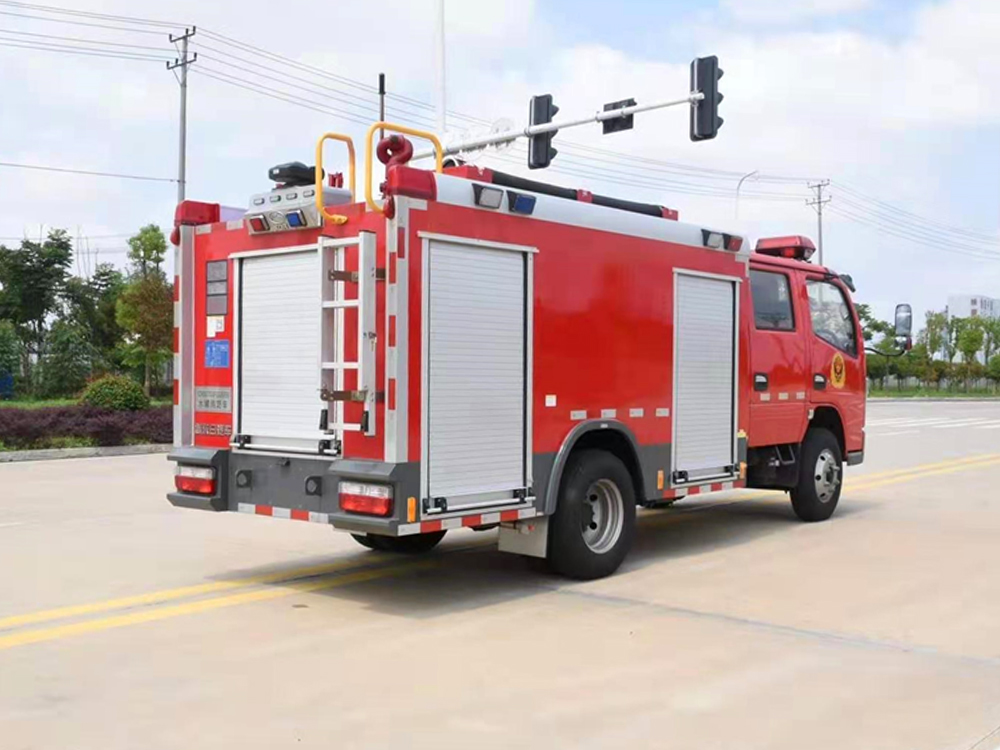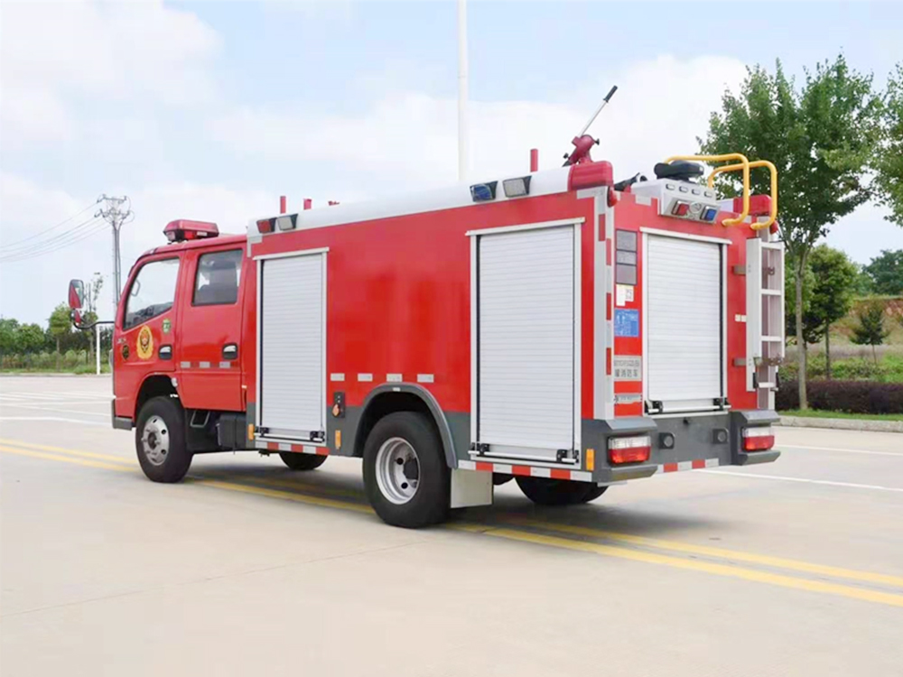 消防泵在箱体中间或者后置,泵房左右两侧4个出水口、器材箱左右后侧均有新款易拉高强度铝合金卷帘门。